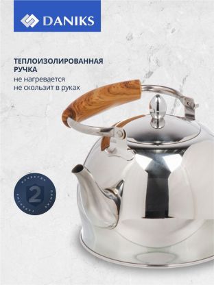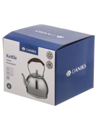 Чайник из нержавеющей стали Daniks 2 л: стильный зеркальный корпус, подходит для индукции, долговечен и легко моется — решение для дома и дачи.
