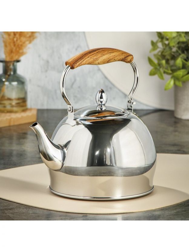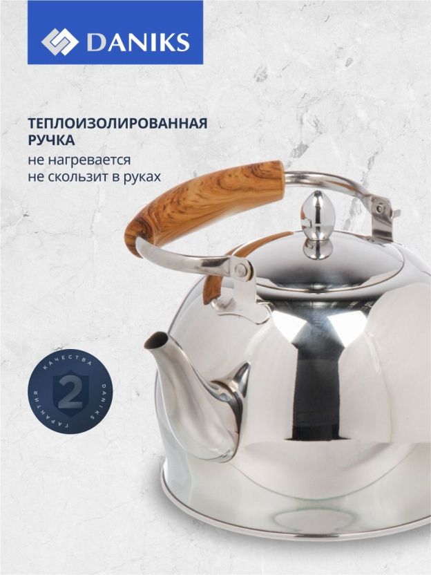 Чайник Daniks из нержавеющей стали — это практичный выбор для тех, кто ищет недорогой, но надежный чайник для индукционной плиты. Благодаря зеркальной полировке корпус смотрится эффектно и легко очищается. Капсульное дно обеспечивает равномерный нагрев воды на всех типах плит, включая индукцию и стеклокерамику. Если вы ищете, какой чайник выбрать для дачи или кухни, обратите внимание на этот вариант: классический дизайн сочетается с функциональностью.