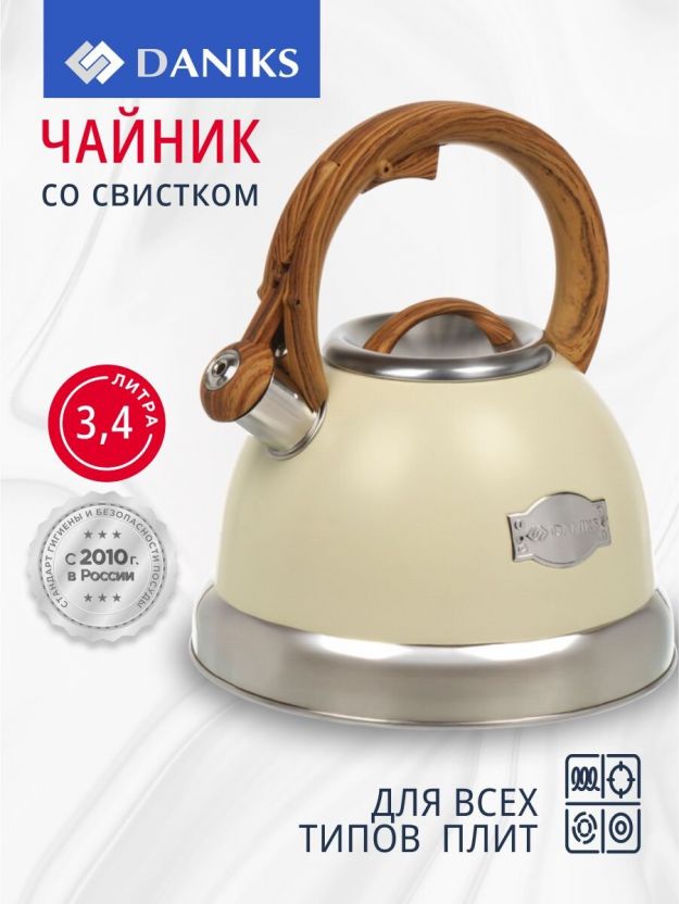 Чайник Daniks 3.4 л из нержавеющей стали: безопасный матовый корпус, нейлоновая ручка, подходит для всех плит, включая индукцию. Отличный выбор для дома и дачи.