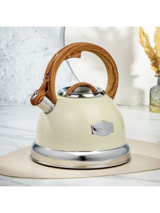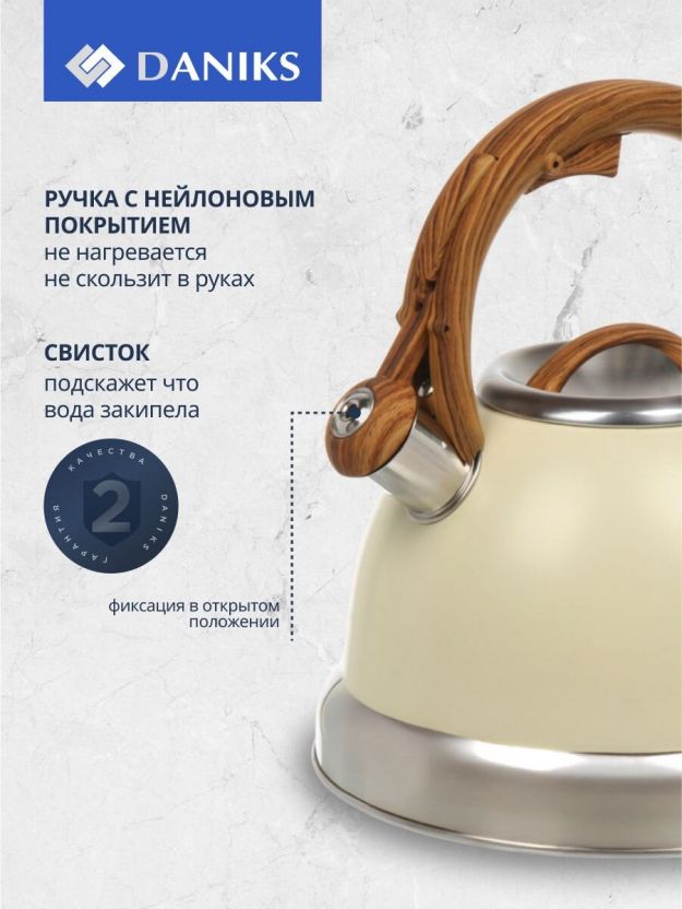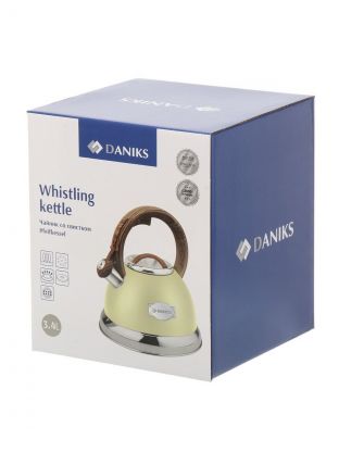 Чайник нержавеющая сталь, 3.4 л, со свистком, матовый, нейлон, Daniks, индукция, слоновая кость, GS-04083C