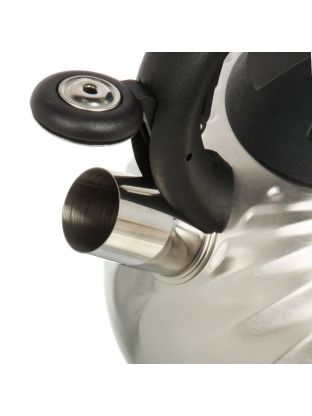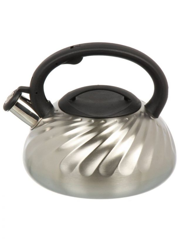 Свисток подаёт сигнал при закипании, что удобно для семьи и на даче. Термоизолированная ручка снижает риск ожогов, а большой объём позволяет кипятить воду на всех.