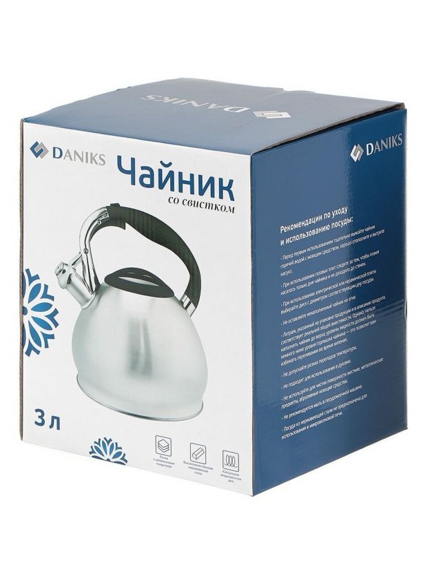 Чайник из нержавеющей стали Daniks 3 л: безопасная бакелитовая ручка, матовая поверхность, идеален для дома и дачи — надёжно, стильно, выгодно.