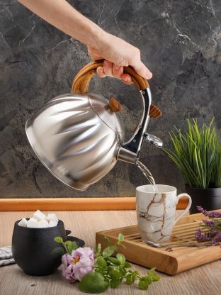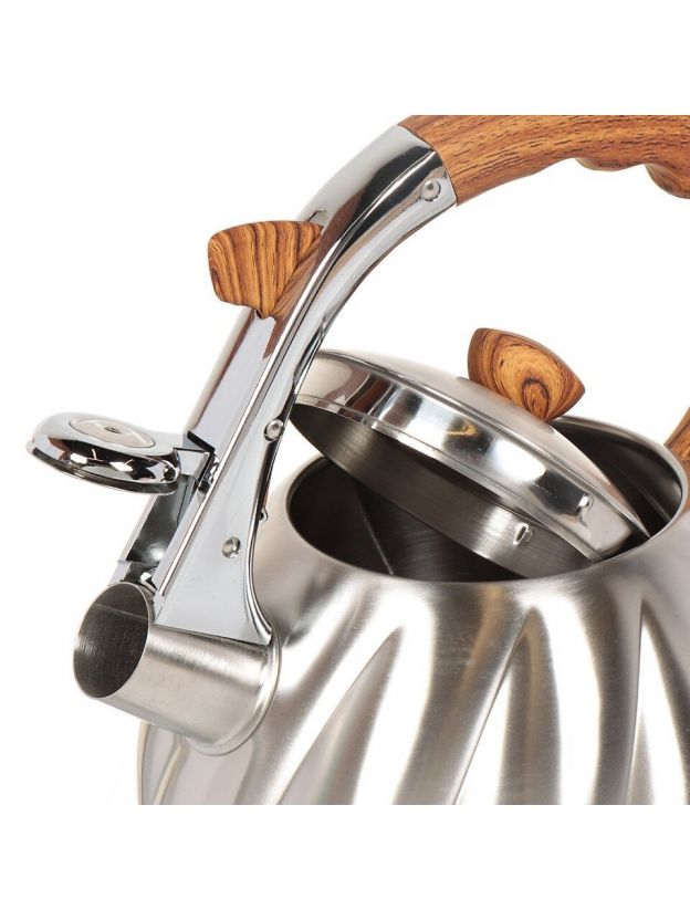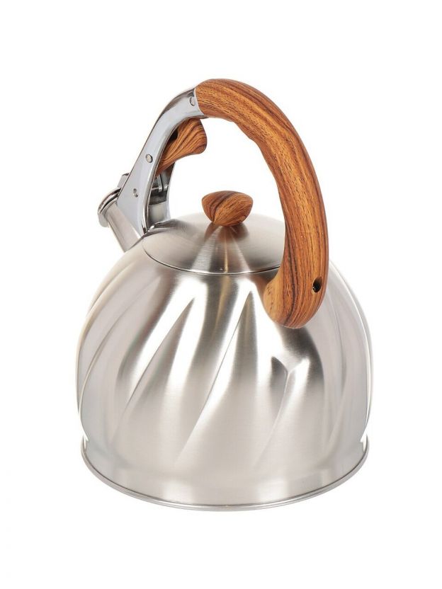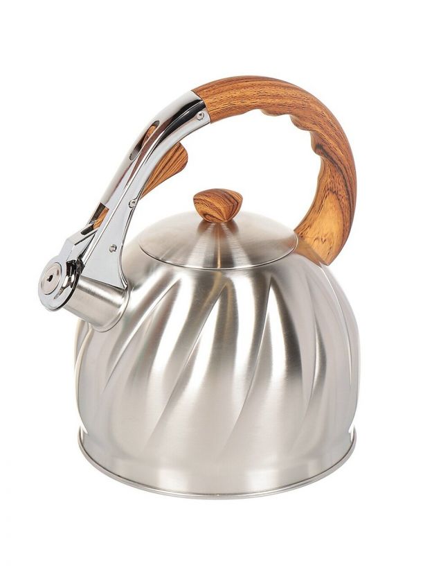 Чайник нержавеющая сталь, 3 л, со свистком, матовый, ручка бакелитовая в цвет дерева, Daniks, GS-04571/MSY-087