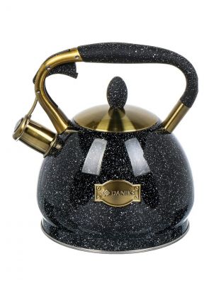 Чайник нержавеющая сталь, 3 л, со свистком, матовый, ручка с покрытием, нейлон, Daniks, индукция, черный, GS-04517G