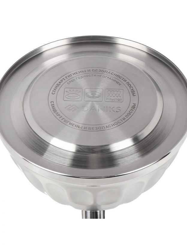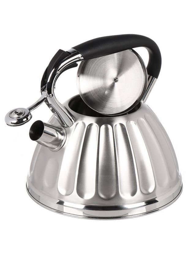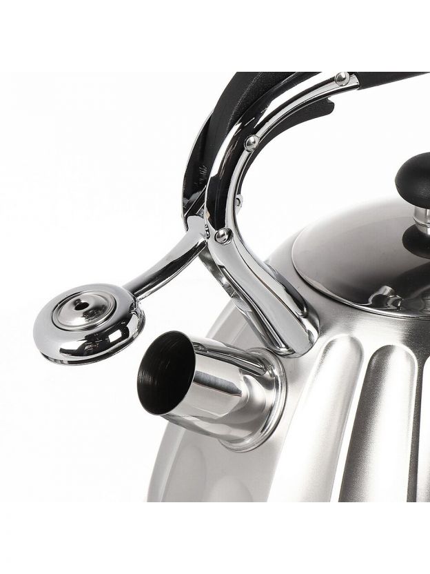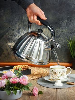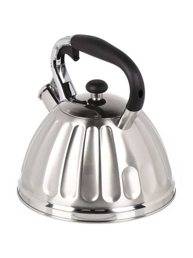 Чайник из нержавеющей стали Daniks 3 л со свистком — безопасный выбор для дома и дачи: быстро закипает, подходит для индукции, бакелитовая ручка не нагревается.