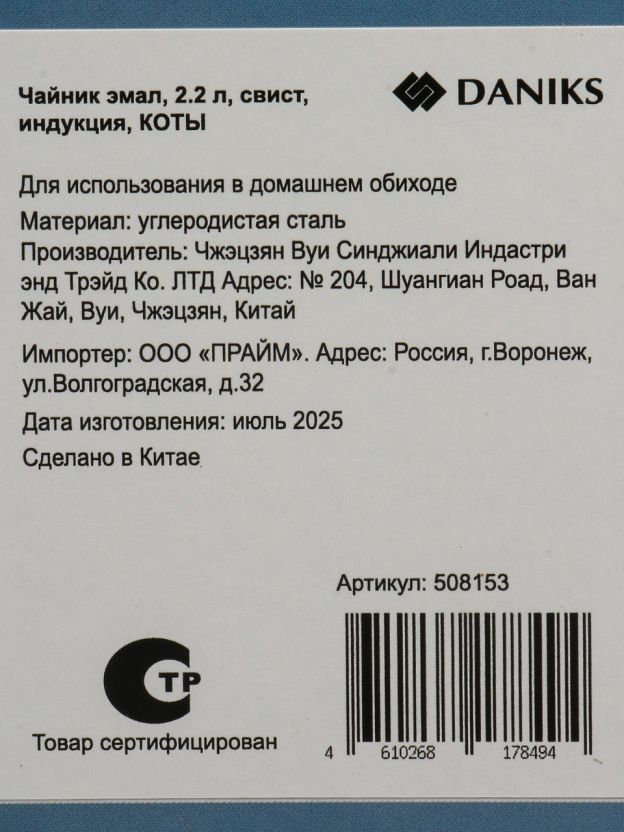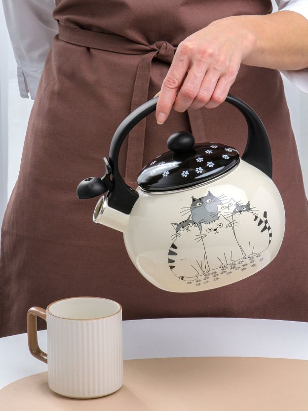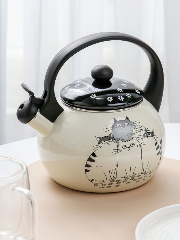 Чайник Daniks Коты 2.2 л для индукции — стильный эмалированный чайник со свистком и термоизолированной ручкой: удобно, безопасно, долговечно. Подходит для всех плит.
