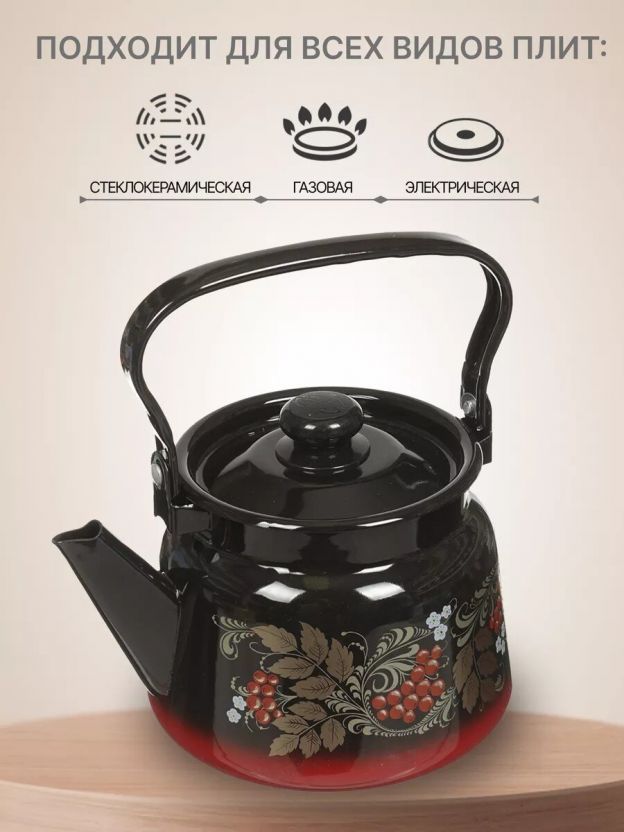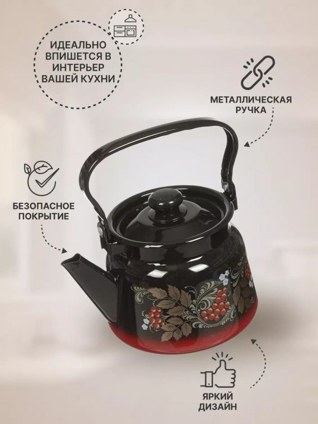 Чайник из стали с эмалированным покрытием 2,3 л — оптимальное решение для дома и дачи: долговечность, стильный декор, цена до 1000 рублей.