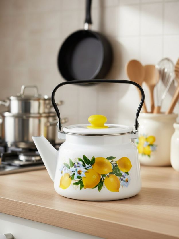 Закажите чайник с эмалированным покрытием «Лимоны» по выгодной цене — получите стильный и практичный аксессуар с гарантией 12 месяцев и доставкой по России.