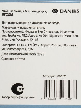 Чайник Daniks 2,5 л из стали с эмалевым покрытием и рисунком «Ягоды» — стильный выбор для дома и дачи, подходит для индукционных плит. Приятный дизайн, долговечность, быстрый нагрев воды.