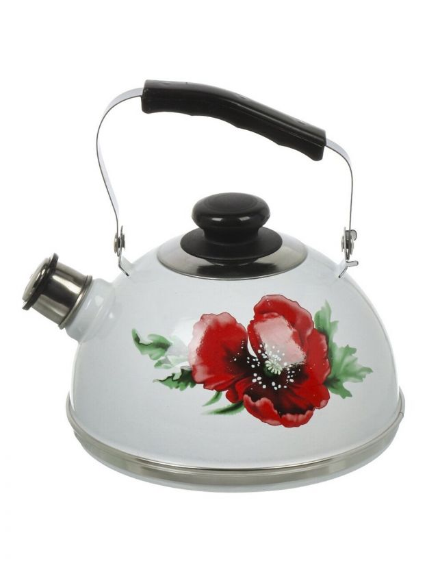 Чайник эмалированный стальной 2.5 л со свистком Ruby Маковый цветок — идеальное решение для кухни: стиль, долговечность и безопасность в одном товаре.