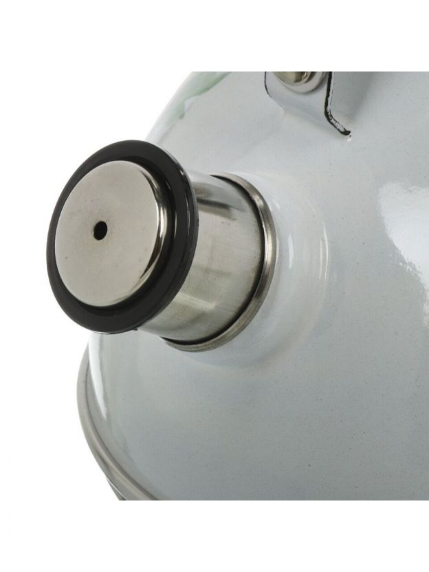 Свисток оповещает о закипании воды, что удобно для занятых людей. Объем 2.5 л оптимален для семьи или гостей, а эмалированное покрытие облегчает уход и продлевает срок службы.