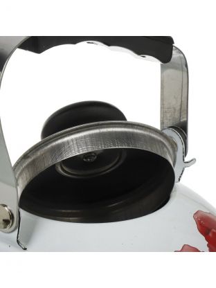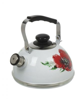 Чайник сталь, эмалированное покрытие, 2.5 л, со свистком, подвижная ручка, Рубин, Маковый цветок, белый, TM04/25/03/04