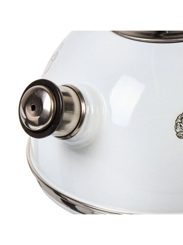 Чайник эмалированный Рубин Космея 2.5 л со свистком — стильное решение для кухни, надежная сталь, удобная консольная ручка, подходит для всех плит.