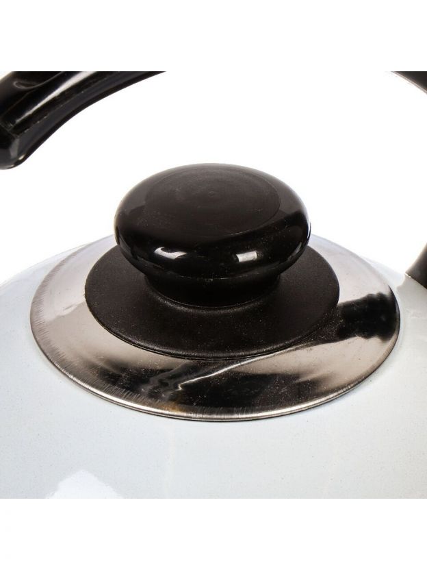 Чайник сталь, эмалированное покрытие, 2.5 л, со свистком, ручка консольная, Рубин, Космея, черно-белый, T04/25/03/41