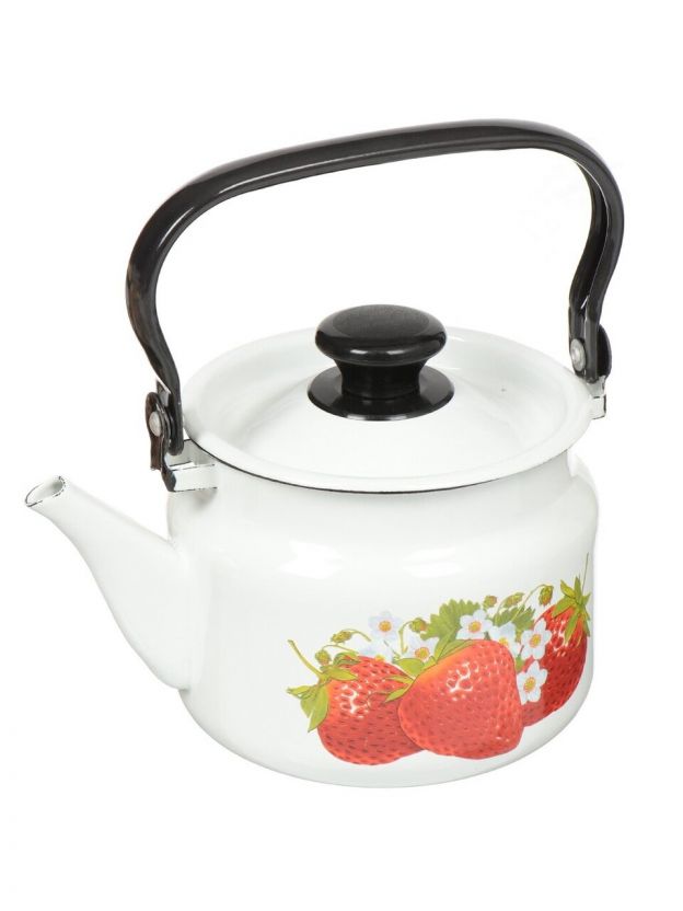 Чайник эмалированный стальной 2 л с декором: долговечность, универсальность и стиль для вашей кухни. Купите недорого для дома, дачи или подарка.