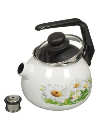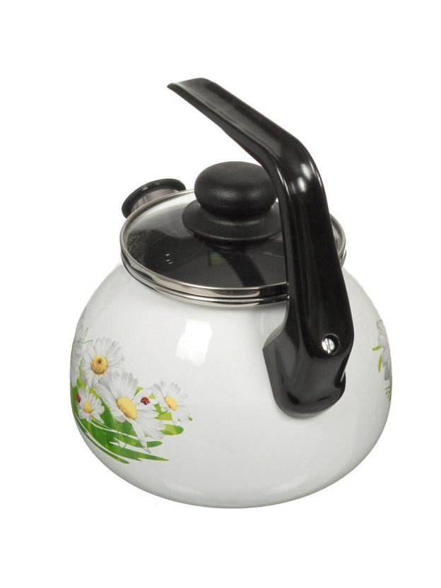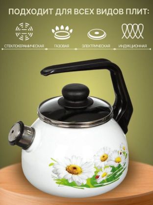 Чайник эмалированный 2 л «Ромашки лето» для индукции: быстрое закипание, долговечная сталь, яркий декор — идеальный выбор для дома и дачи.