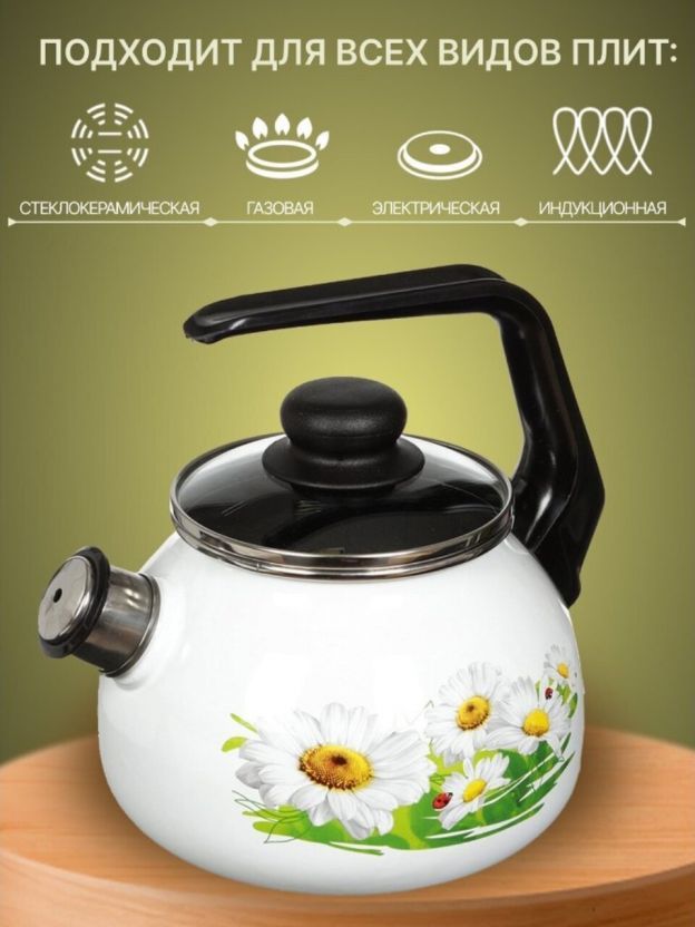 Чайник «Ромашки лето» от бренда СтальЭмаль — это сочетание практичности и эстетики. Эмалированное покрытие защищает сталь от коррозии, не впитывает запахи, а яркий цветочный декор украшает интерьер. Если вы ищете, какой чайник выбрать для индукционной плиты или что лучше для ежедневного использования, обратите внимание на этот вариант: он совместим с любыми плитами, включая стеклокерамику и индукцию.