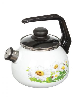 Чайник сталь, эмалированное покрытие, 2 л, со свистком, ручка консольная, СтальЭмаль, Ромашки лето, индукция, 4с210я