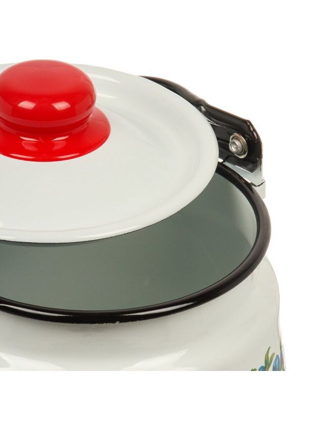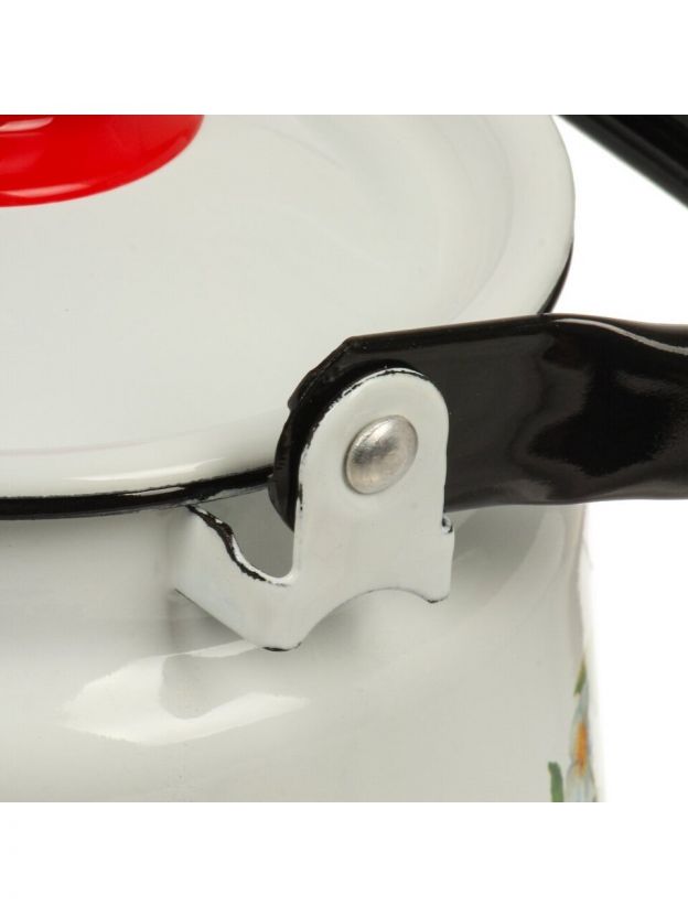В отличие от аналогов с пластиковыми деталями, этот чайник полностью выполнен из металла, что гарантирует долгий срок службы и отсутствие посторонних запахов. Если вы ищете, какой чайник лучше для дачи, обратите внимание на простоту ухода: изделие можно мыть в посудомоечной машине, а эмалированная поверхность устойчива к пятнам и царапинам. Ручка из металла выдерживает высокие температуры, а стильный белый декор украсит любую кухню.