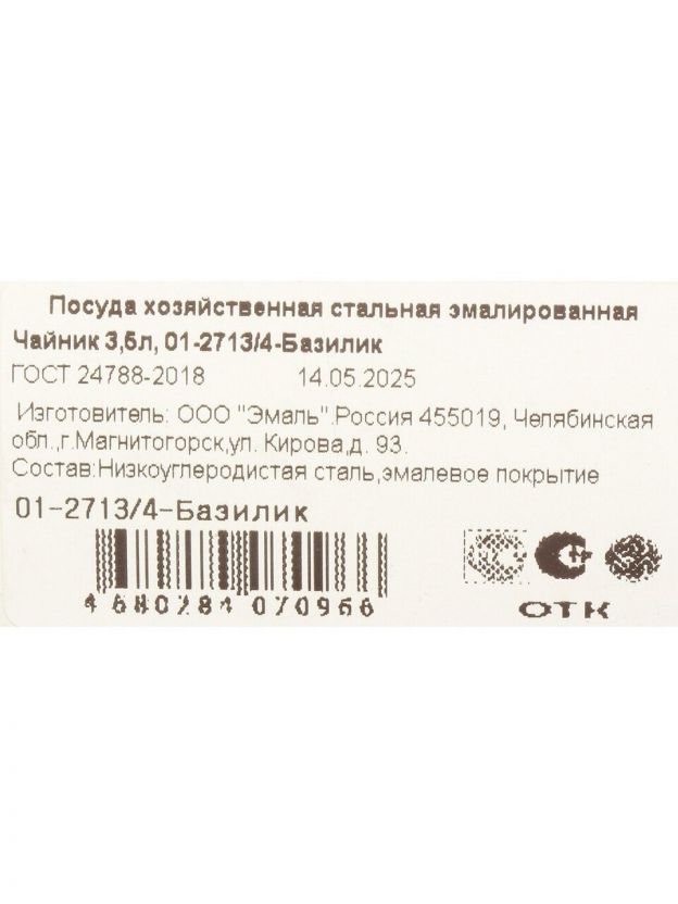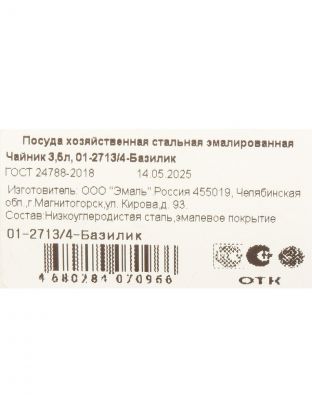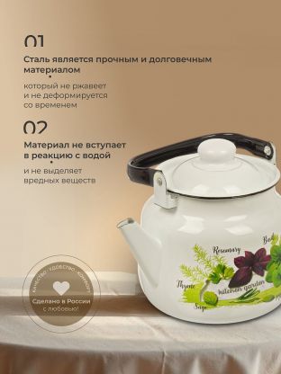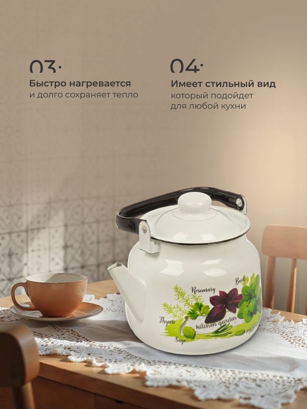 Чайник сталь, эмалированное покрытие, 3.5 л, ручка металлическая, Базилик, индукция, 01-2713/4М