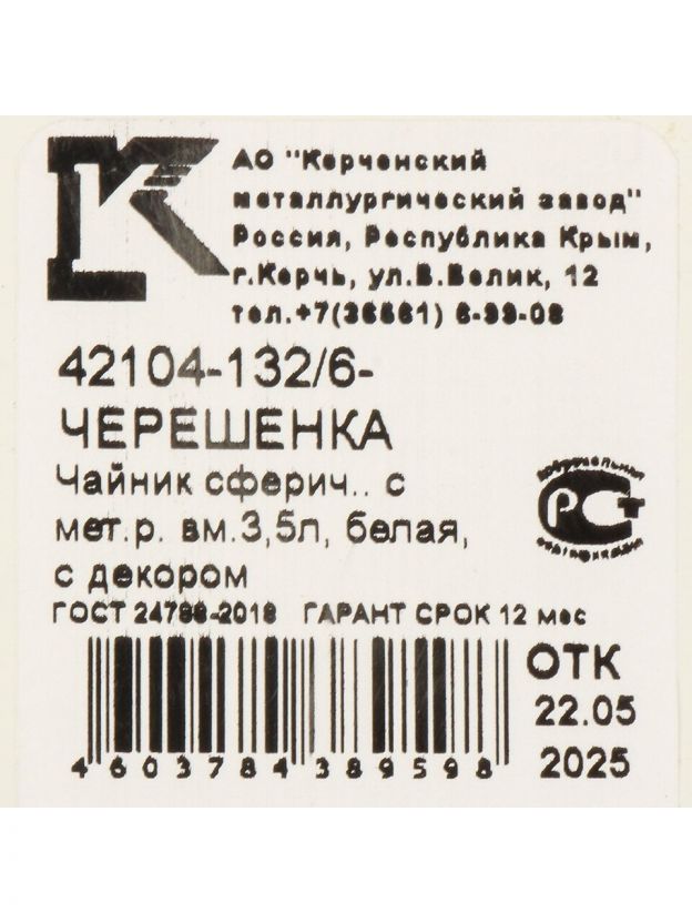 Чайник эмалированный 3.5 л Керченский металлургический завод — долговечность стали, удобство и стиль для вашей кухни. Идеален для дома и дачи, выгодная цена!