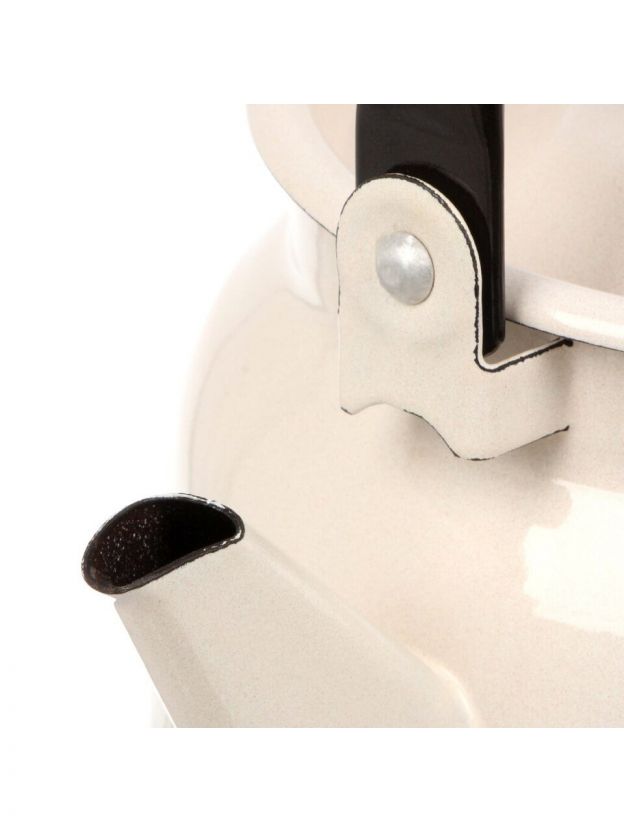 Объём — 3.5 литра, чайник совместим с индукционными, газовыми, электрическими и стеклокерамическими плитами. Дно однослойное, материал корпуса — сталь с эмалированным покрытием.