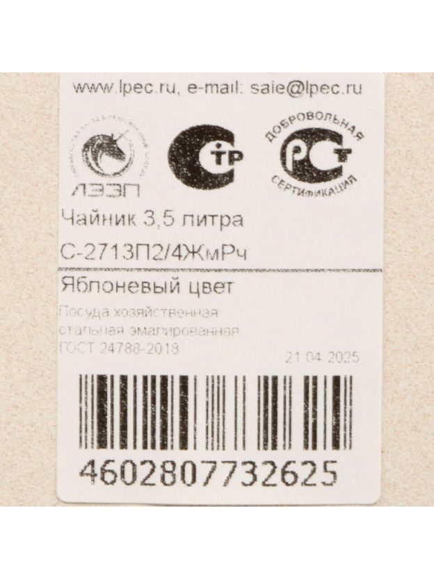 Чайник ЛЗЭП «Яблоневый цвет», 3.5 л: стальная надежность, эмалированное покрытие, подходит для индукции — выгодное решение для кухни и дачи.