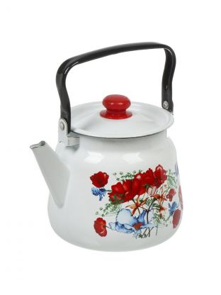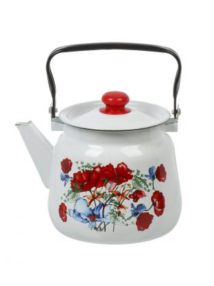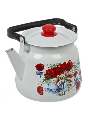 Чайник сталь, эмалированное покрытие, 3.5 л, с кнопкой, Сибирские товары, Цветы красные, белый, С2716.3*95