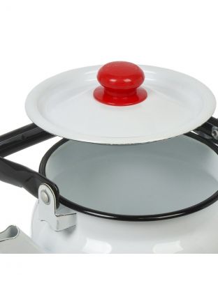 Объём — 3,5 литра. Корпус и ручка выполнены из стали с эмалированным покрытием для защиты от коррозии и легкой чистки.