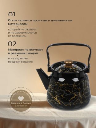 Закажите стальной чайник «Мрамор золотой» прямо сейчас — получите выгодную цену, гарантию 12 месяцев и быструю доставку. Надежный выбор для вашей кухни и отличная идея для подарка.