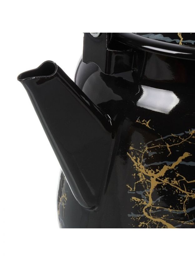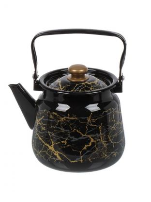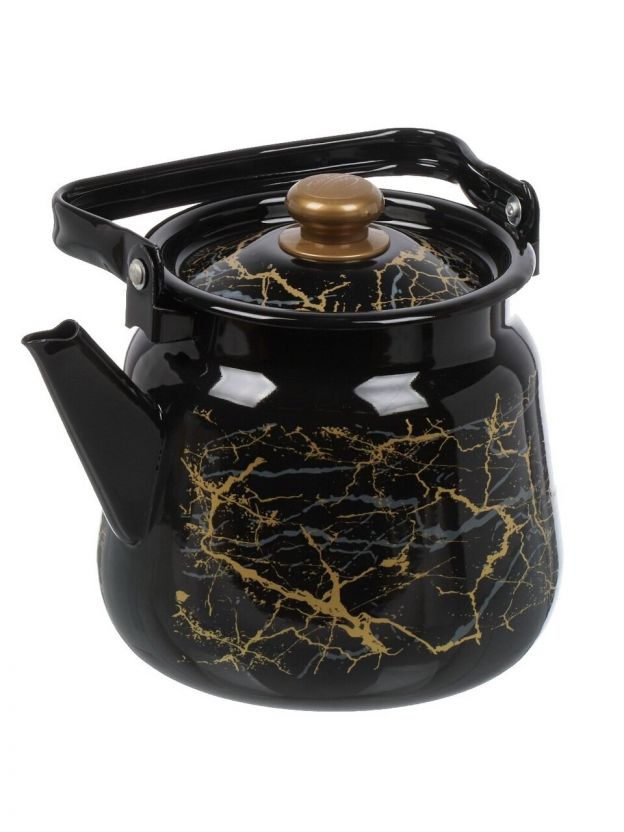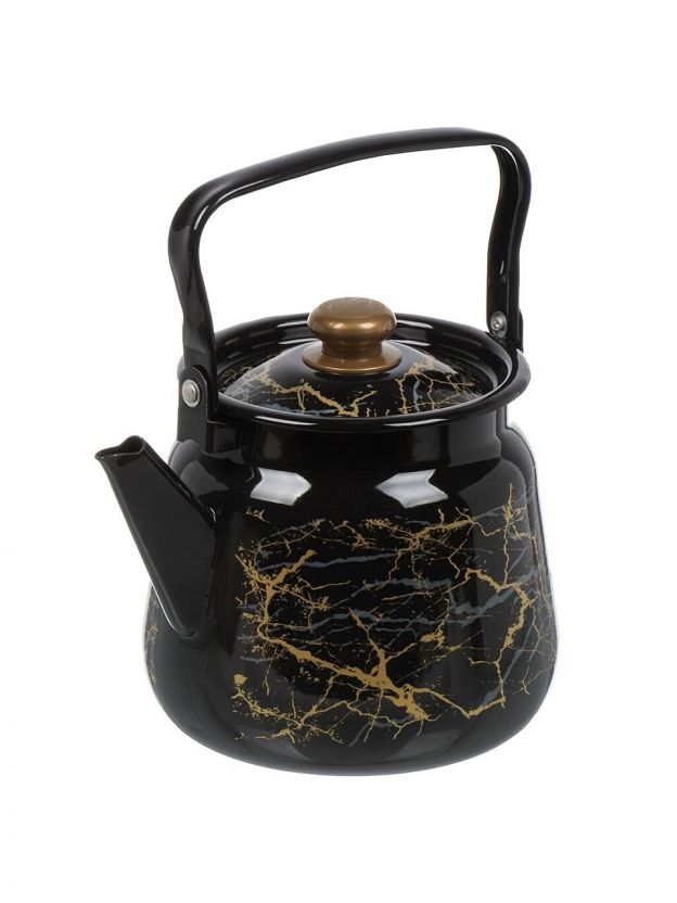 Чайник сталь, эмалированное покрытие, 3.5 л, с кнопкой, Сибирские товары, Мрамор золотой, черный, С2716.367*131