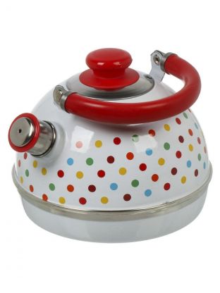 Чайник сталь, эмалированное покрытие, 3.5 л, со свистком, подвижная ручка, Рубин, Разноцветные горохи, белый, TMM04/35/03/24/H13