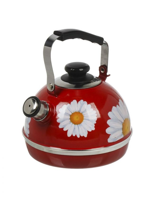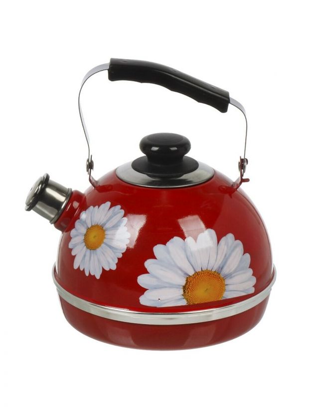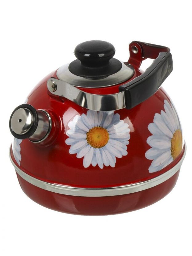 Чайник стальной с эмалированным покрытием Рубин Ромашки 3.5 л — идеальное решение для большой семьи: надежный, недорогой, со свистком и подвижной ручкой для удобства в быту.