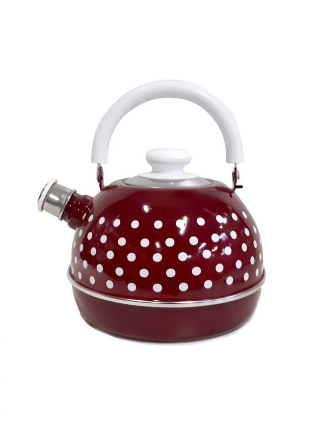 Чайник сталь, эмалированное покрытие, 3.5 л, со свистком, подвижная ручка, Рубин, бордовый, белые горохи, TMM04/35/01/27/32/H03
