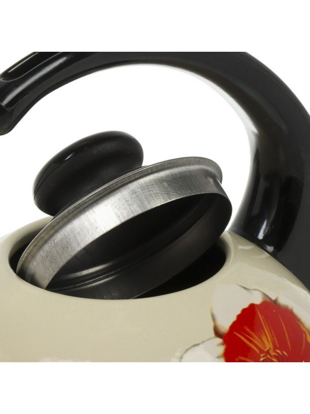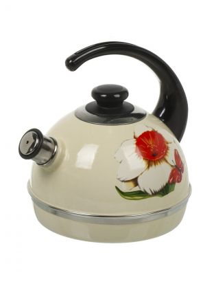 Чайник сталь, эмалированное покрытие, 3.5 л, со свистком, ручка консольная, Рубин, Нарцисс, слоновая кость, Т04/35/04/07