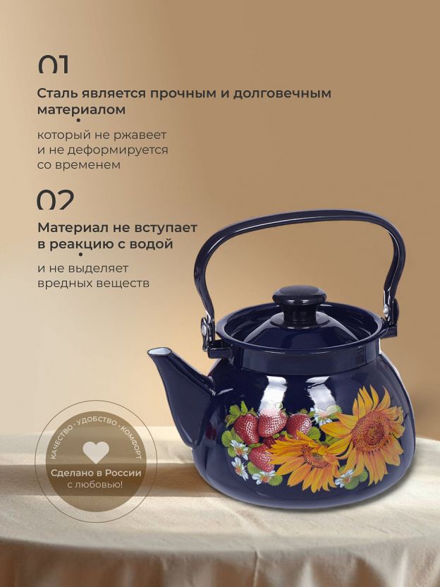 Оформите заказ прямо сейчас и получите чайник с быстрой доставкой по России. Качественная эмаль, надежная сборка и универсальный объем — практичное приобретение для любой кухни.