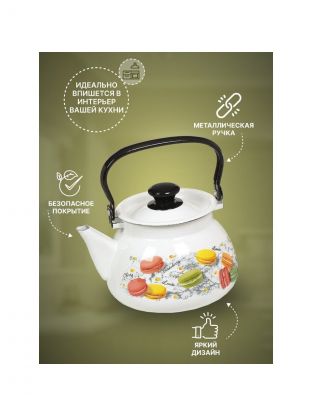 Ищете, какой чайник выбрать для ежедневного использования или дачи? Модель «Цветное печенье» — это эмалированный стальной чайник объёмом 3 литра, отлично подходящий для семьи, гостей или сезонного использования. Эмаль защищает от царапин и ржавчины, а яркий дизайн добавит уюта любой кухне. Благодаря металлической ручке и прочному корпусу, чайник выдерживает частое нагревание и мытьё в посудомоечной машине. Если вы спрашиваете: «Подходит ли этот чайник для стеклокерамической плиты?» — да, он универсален для большинства плит, кроме индукционных.