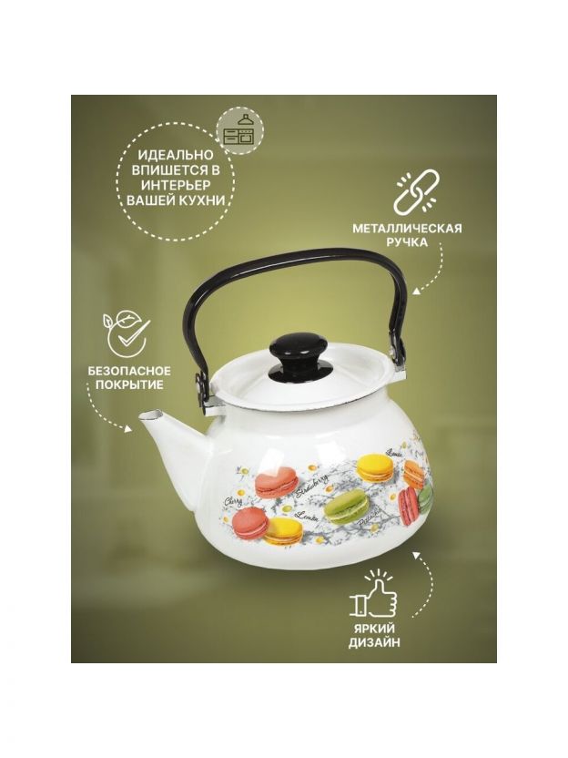 Чайник эмалированный 3 л «Цветное печенье» — долговечная сталь, яркий декор, идеален для дома и дачи. Не боится посудомоечной машины, выгодно для семьи.