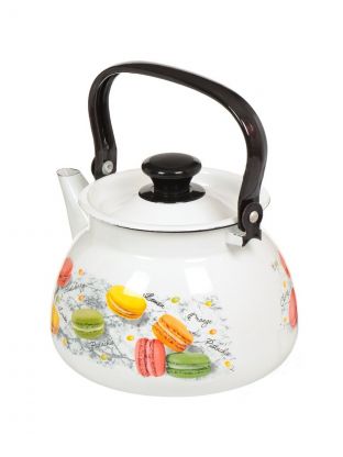 Чайник сталь, эмалированное покрытие, 3 л, с декором, ручка металлическая, Керченский металлургический завод, Цветное печенье, белый, 42104-122/6-У4
