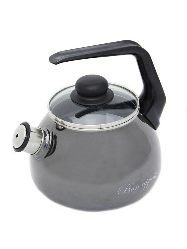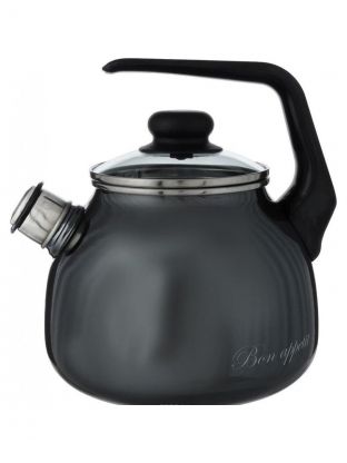 Чайник сталь, эмалированное покрытие, 3 л, со свистком, ручка консольная, Vitross, Bon Appetit, индукция, мокрый асфальт, 1RС12