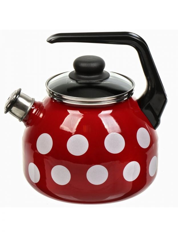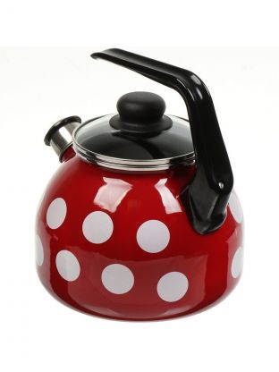 Чайник сталь, эмалированное покрытие, 3 л, со свистком, с пластиковой кнопкой, Сибирские товары, Вишневый белый горох, индукция, С2717.3ЯР*106