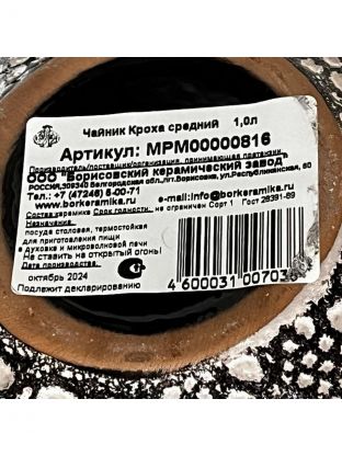 Чайник заварочный керамика, 1 л, средний, Борисовская керамика, Кроха, МРМ00000816