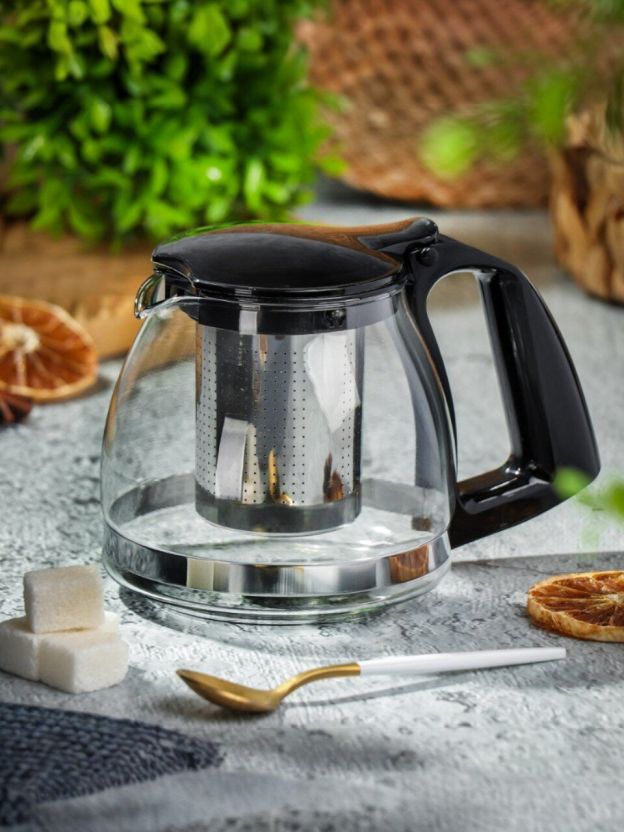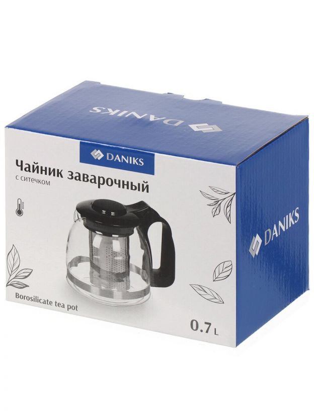 Чайник заварочный стекло, 0.7 л, с ситечком, Daniks, Y3-1393, черный