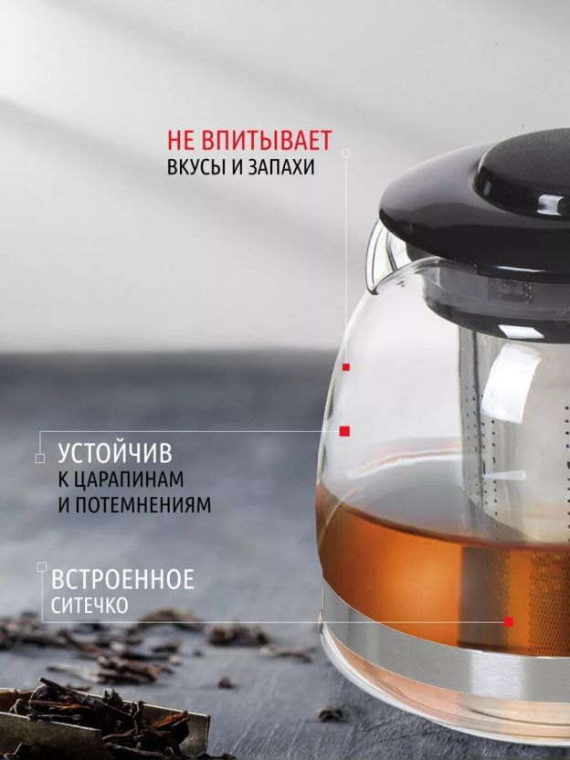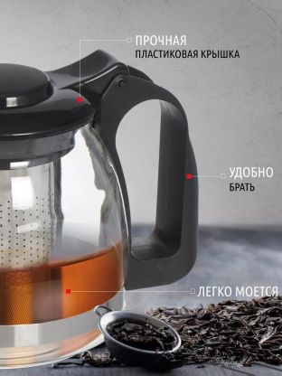 Чайник заварочный можно использовать для заваривания как чая, так и различных травяных настоев, а удобная крышка поддержит нужную температуру. Изделие изготовлено по современной технологии из высокопрочного стекла. Материал чайника отличается износоустойчивостью и легкостью, не впитывает запахи, прост в использовании и мойке. Сетчатый фильтр не позволит чаинкам или мелким частям отвара попасть в напиток. Прозрачный корпус позволяет контролировать процесс заваривания, чтобы получить напиток желаемой крепости.