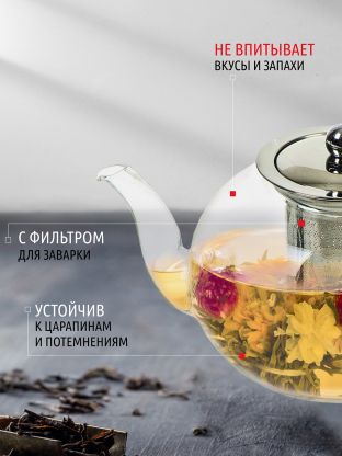 Чайник заварочный изготовлен из высококачественного стекла и снабжен крышкой. Стеклянный корпус и фильтр обеспечивают легкую очистку. Лаконичный дизайн изделия прекрасно впишется в любой интерьер.