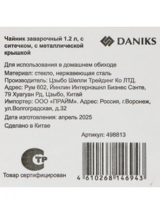 Оформите заказ на заварочный чайник Daniks TP1200S прямо сейчас — получите выгодную цену, быструю доставку и гарантию качества от проверенного бренда.