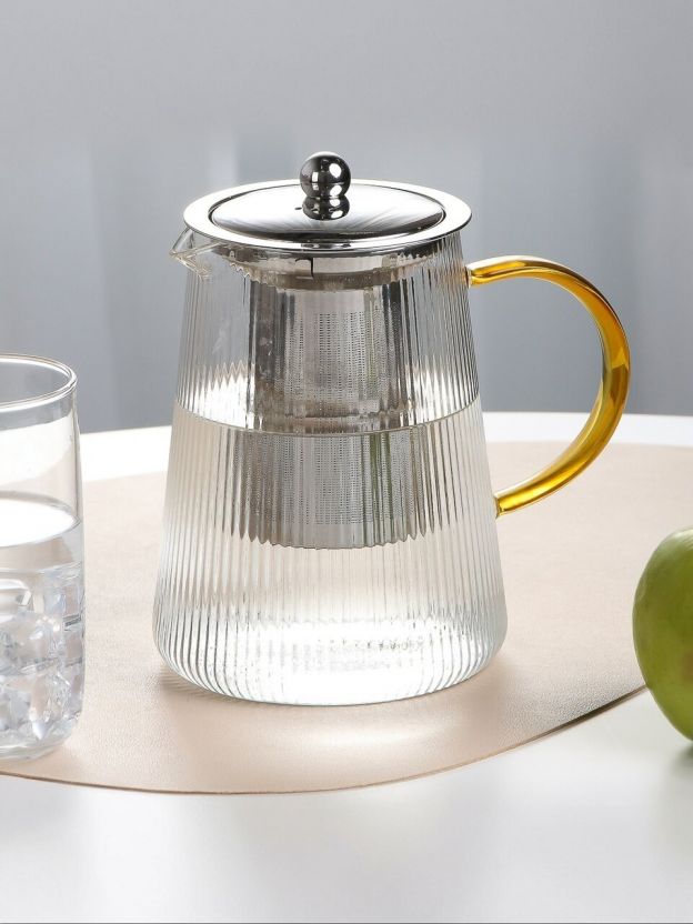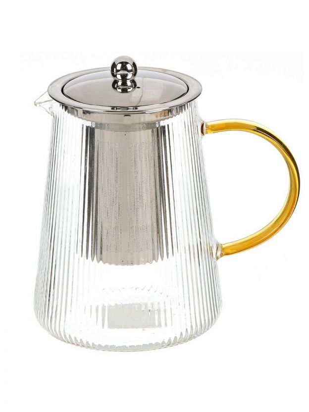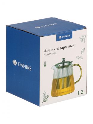 Стильный стеклянный заварочный чайник Daniks 1.2 л с металлическим ситечком: чистый вкус чая, долговечность, идеальный подарок и для уютных встреч.