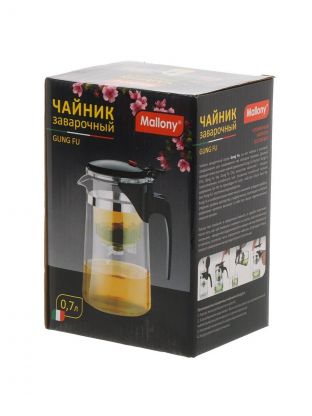Чайник заварочный стекло, нержавеющая сталь, 0.7 л, с ситечком, с кнопкой, Mallony, Gung Fu, 004533
