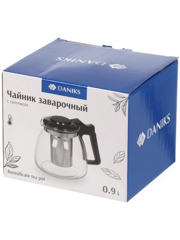 Чайник заварочный стекло, пластик, 0.9 л, с ситечком, Daniks, 329888, черный