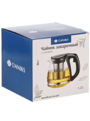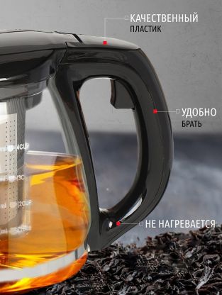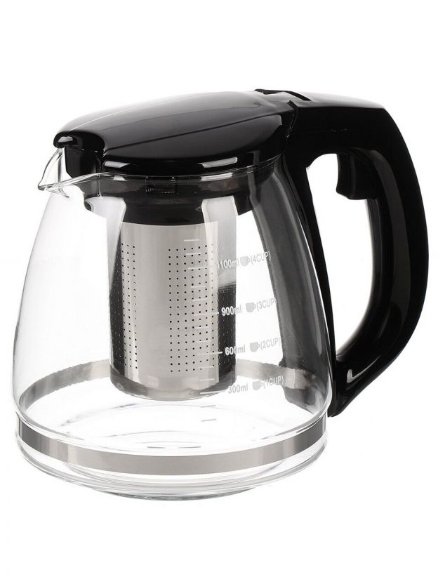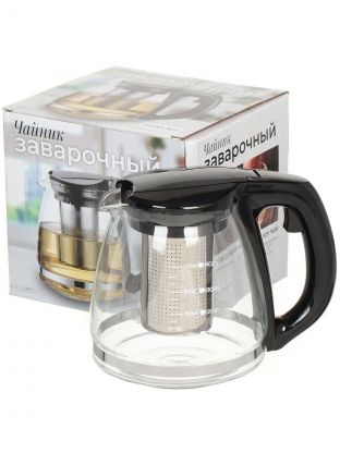 Чайник заварочный стекло, пластик, 1.2 л, с ситечком, 329889, черный